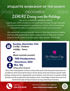 Join us for a quick Dining Etiquette Session and be ready for all the upcoming winter festivities!